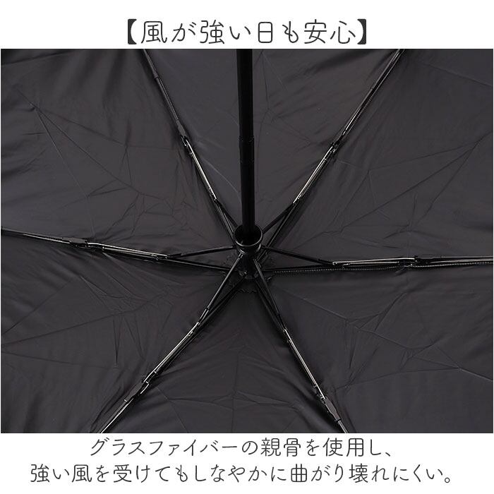 ・グラスファイバーの親骨を使用し、強い風を受けてもしなやかに曲がり壊れにくい。