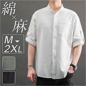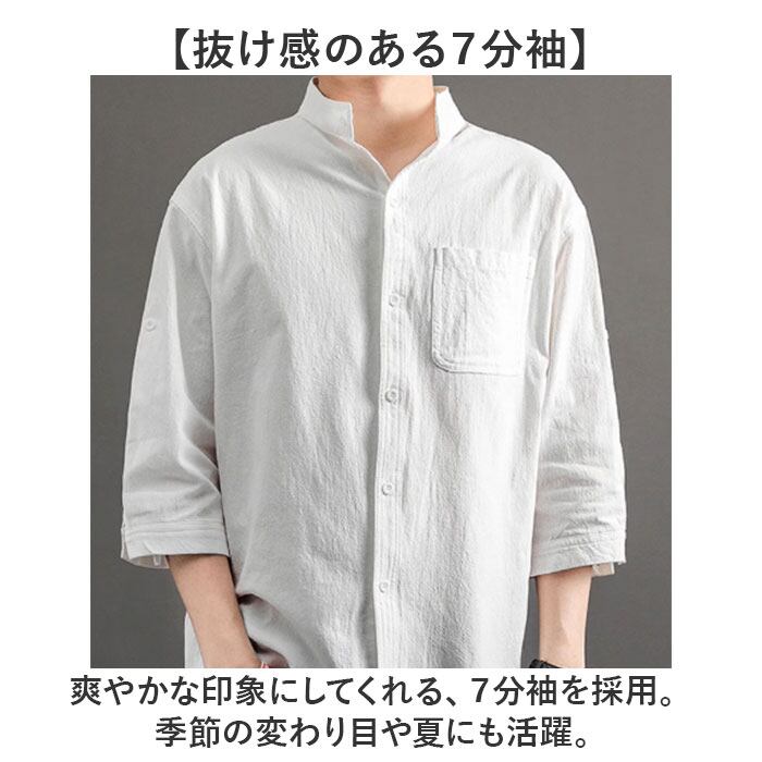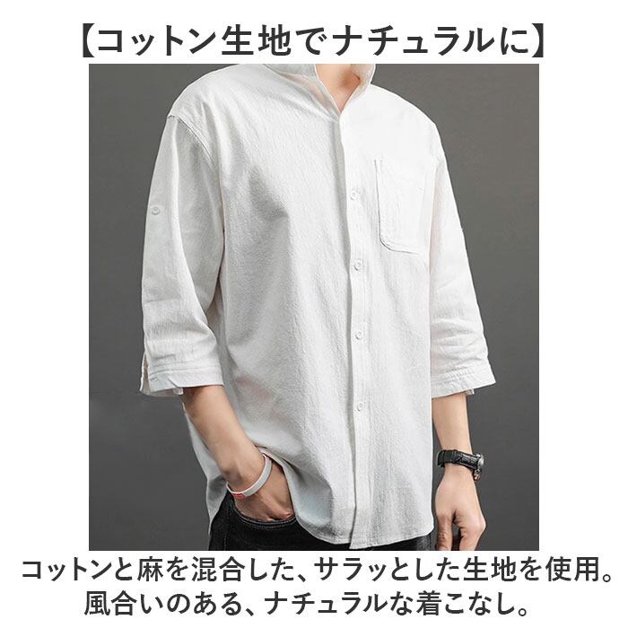・コットンと麻を混合した、サラッとした生地を使用。風合いのある、ナチュラルな着こなし。