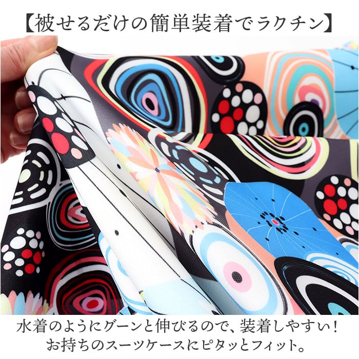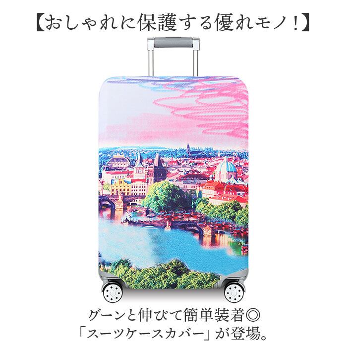 ・水着のようにグーンと伸びるので、装着しやすい!お持ちのスーツケースにピタッとフィット。