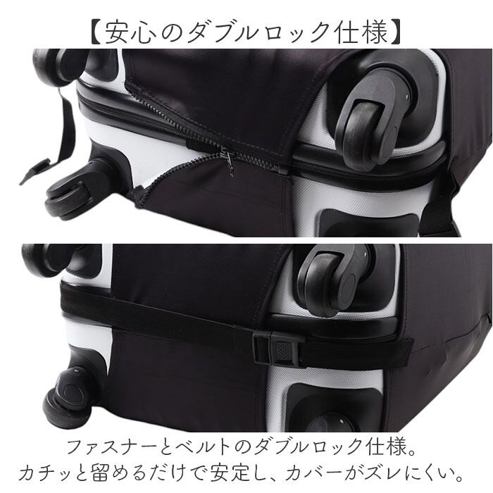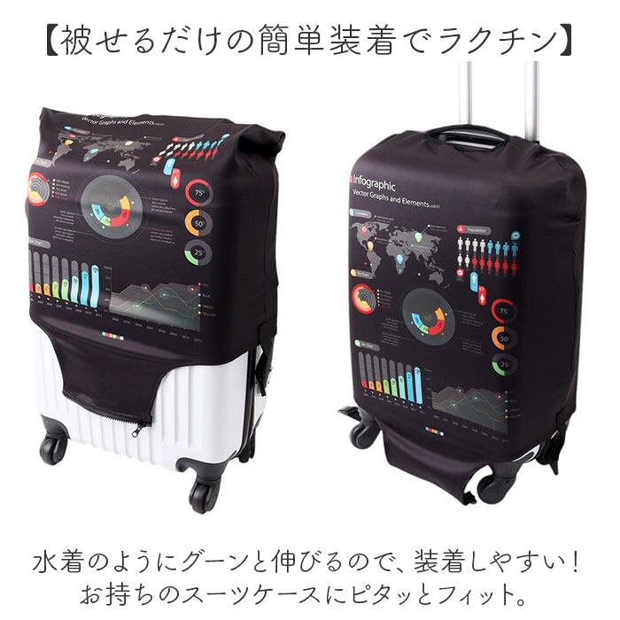 ・水着のようにグーンと伸びるので、装着しやすい!お持ちのスーツケースにピタッとフィット。