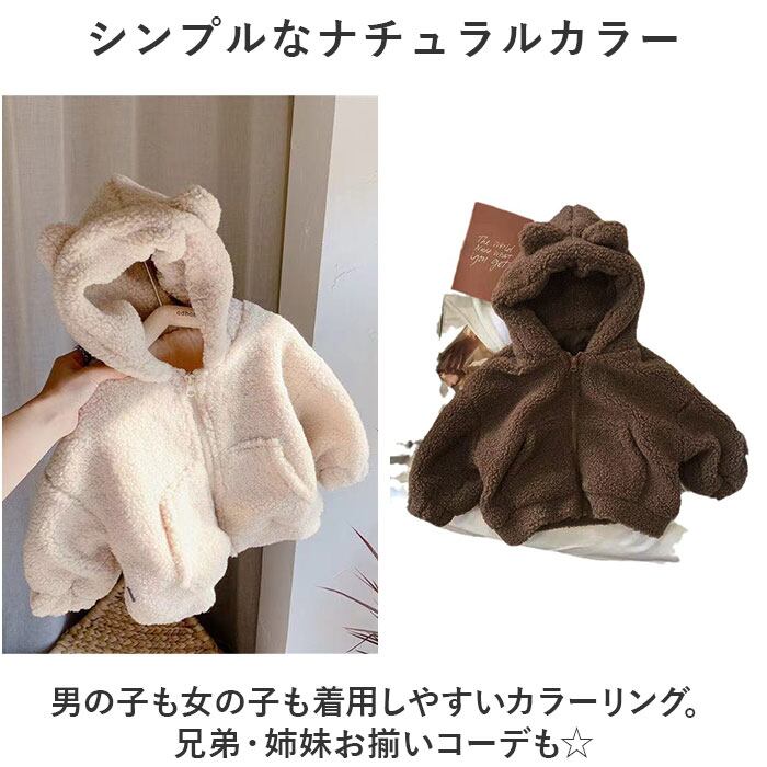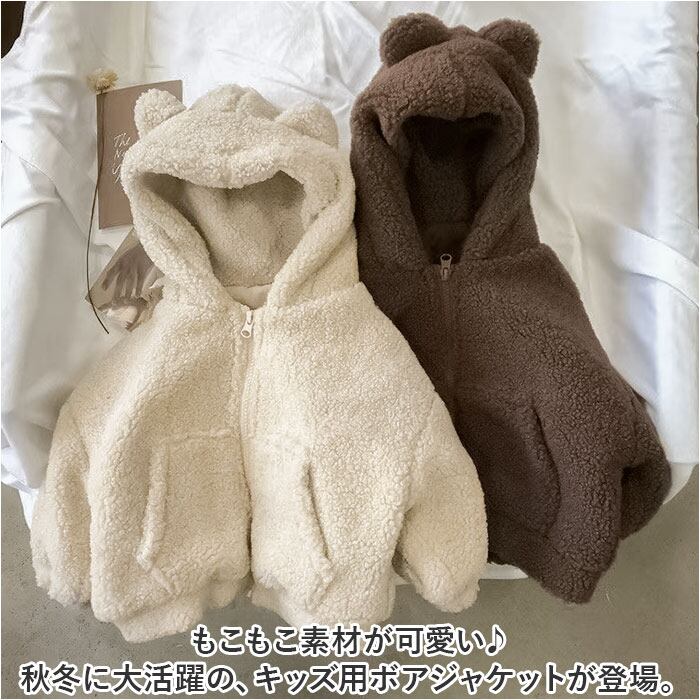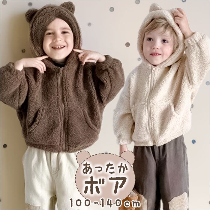 ボアジャケット キッズ 子供 通販 ジャケット ボアコート クマ耳 くま耳 熊耳 羽織り 羽織 子供服 子ども服 フード付き フード ボア 暖かい あたたかい あったか もこもこ モコモコ ふわふわ フワフワ ファスナー 防寒 カジュアル かわいい アウター