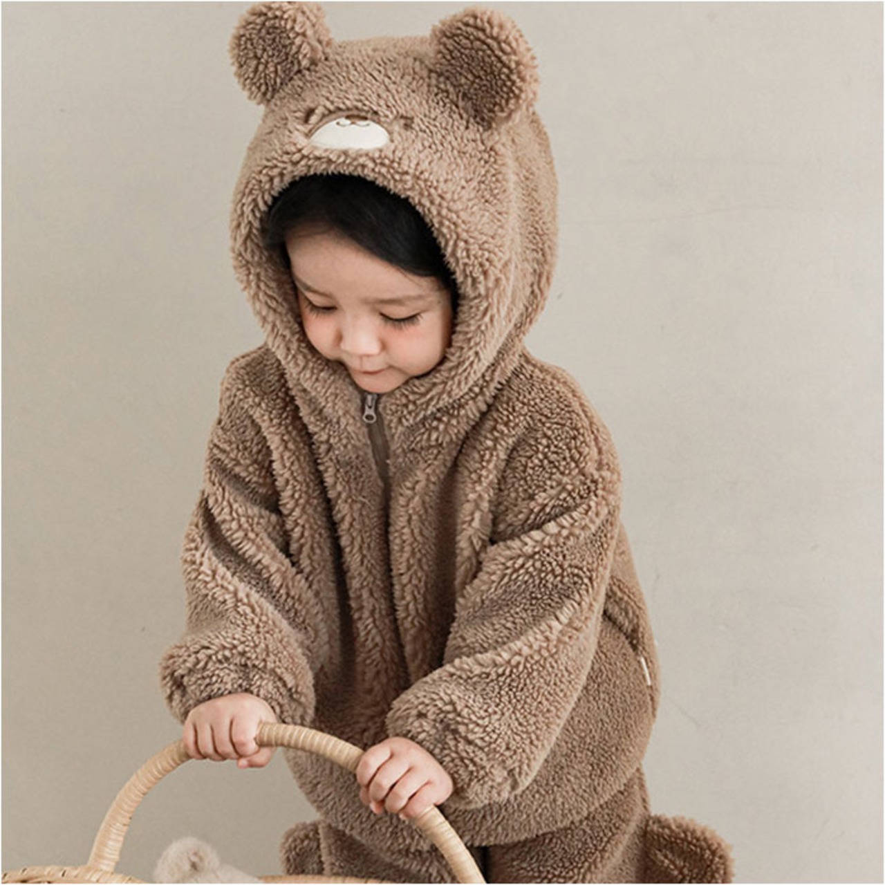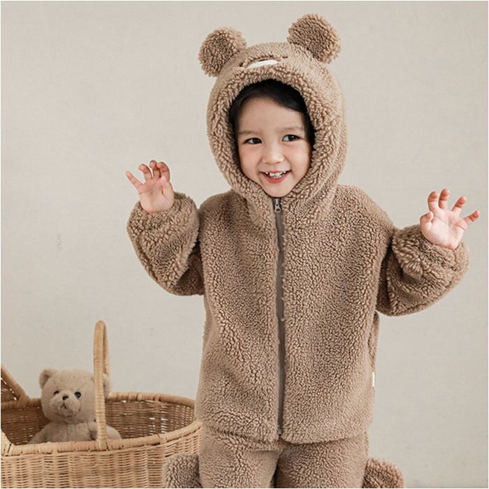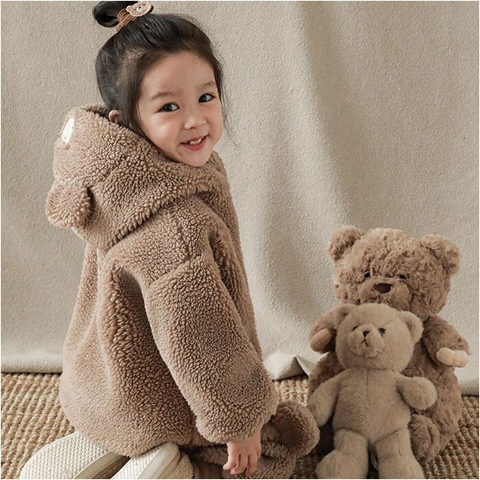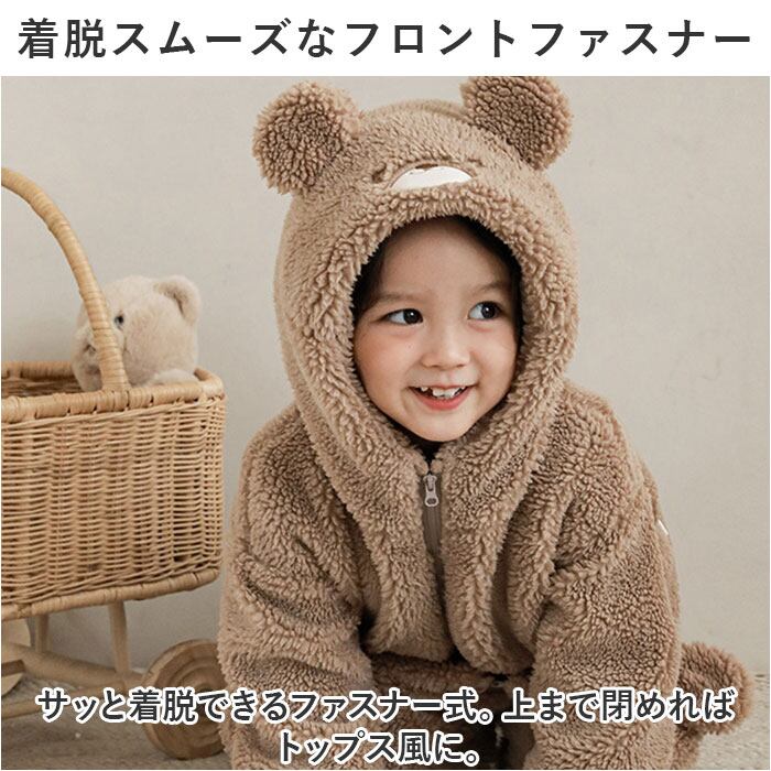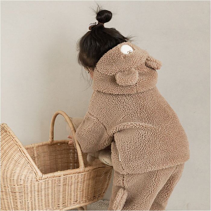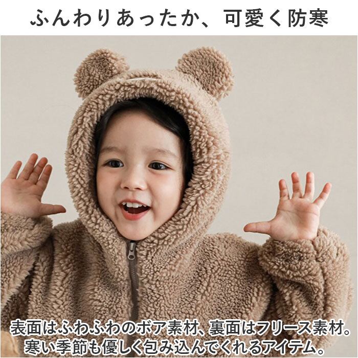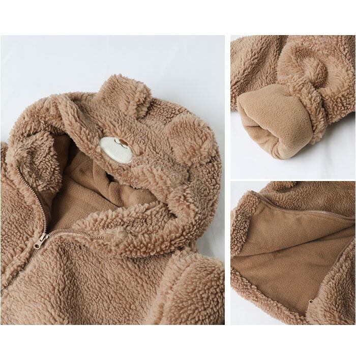 ・フードは耳が付いたクマさんモチーフ♪頭に被ると、あたたかさも可愛さもアップ!