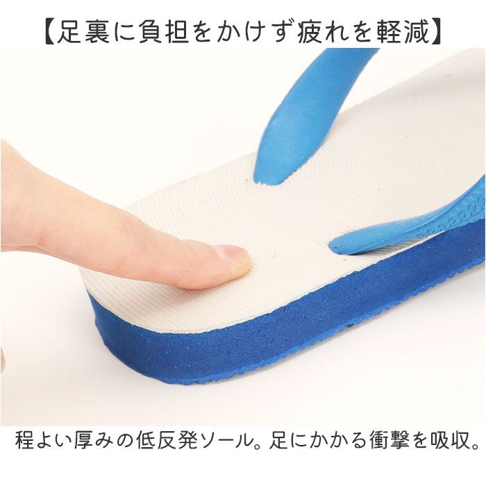・つま先部分が下駄の鼻緒のようなフォルム。足の甲を覆わず圧迫感がないので、通気性も抜群。