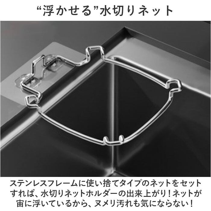 ・水切りネットをふわっと浮かせて、省スペース!シンク周りに取り付け簡単「水切りネットホルダー」!