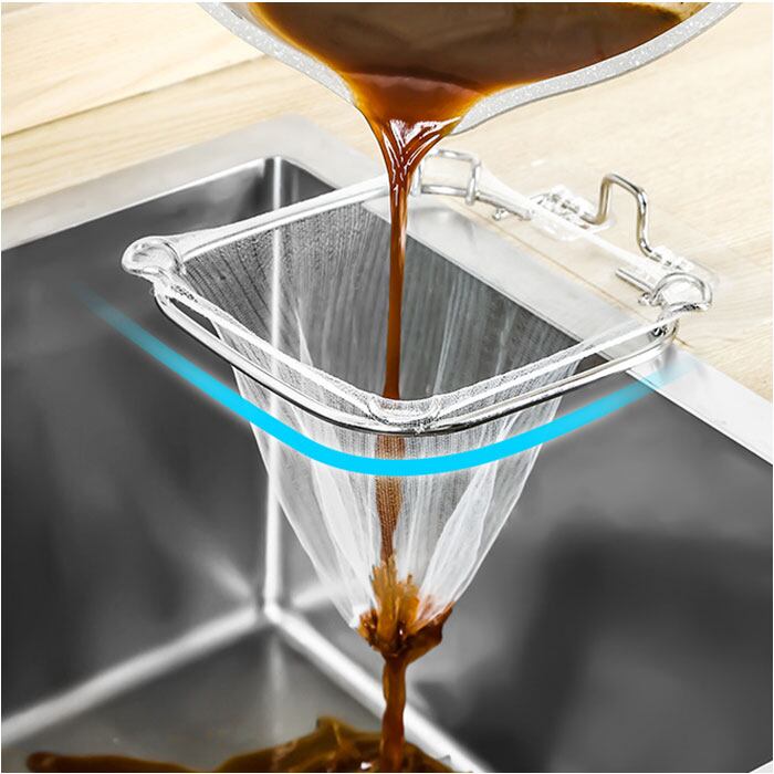 ・ステンレスフレームに使い捨てタイプのネットをセットすれば、水切りネットホルダーの出来上がり!ネットが宙に浮いているから、ヌメリ汚れも気にならない!