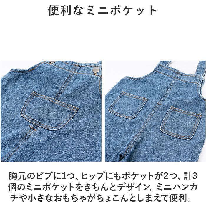 ・胸元のビブに1つ、ヒップにもポケットが2つ、計3個のミニポケットをきちんとデザイン。ミニハンカチや小さなおもちゃがちょこんとしまえて便利。