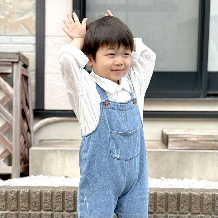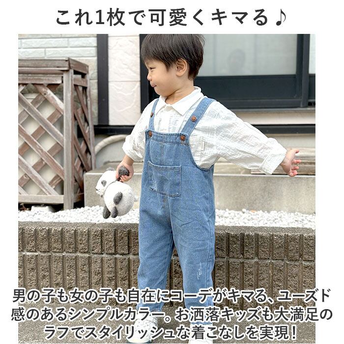 ・これ1枚で、ワイルド&キュートなキッズスタイルが完成!ラフなデニム素材が肌に心地よい「キッズ デニムオーバーオール」が新登場!