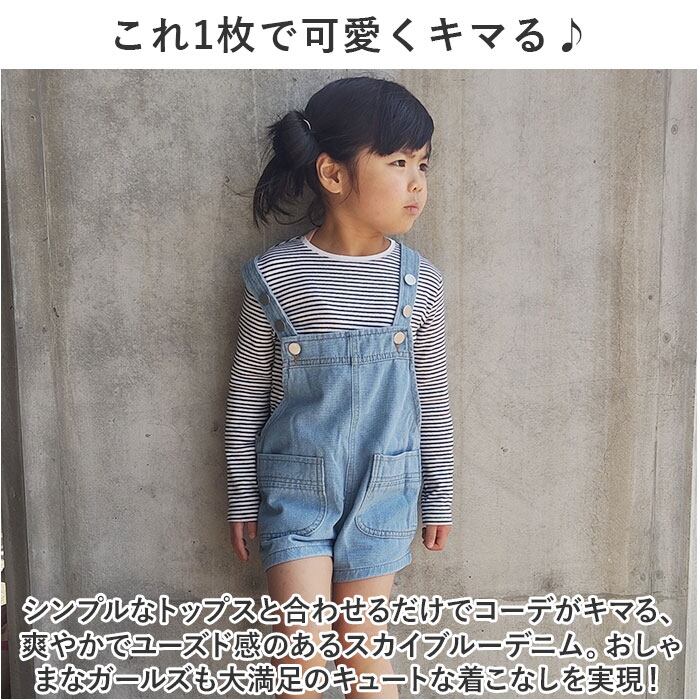 ・これ1枚で、ワイルド&キュートなキッズスタイルが完成!ラフなデニム素材が肌に心地よい「キッズ デニムオーバーオール(女の子用)」が新登場!