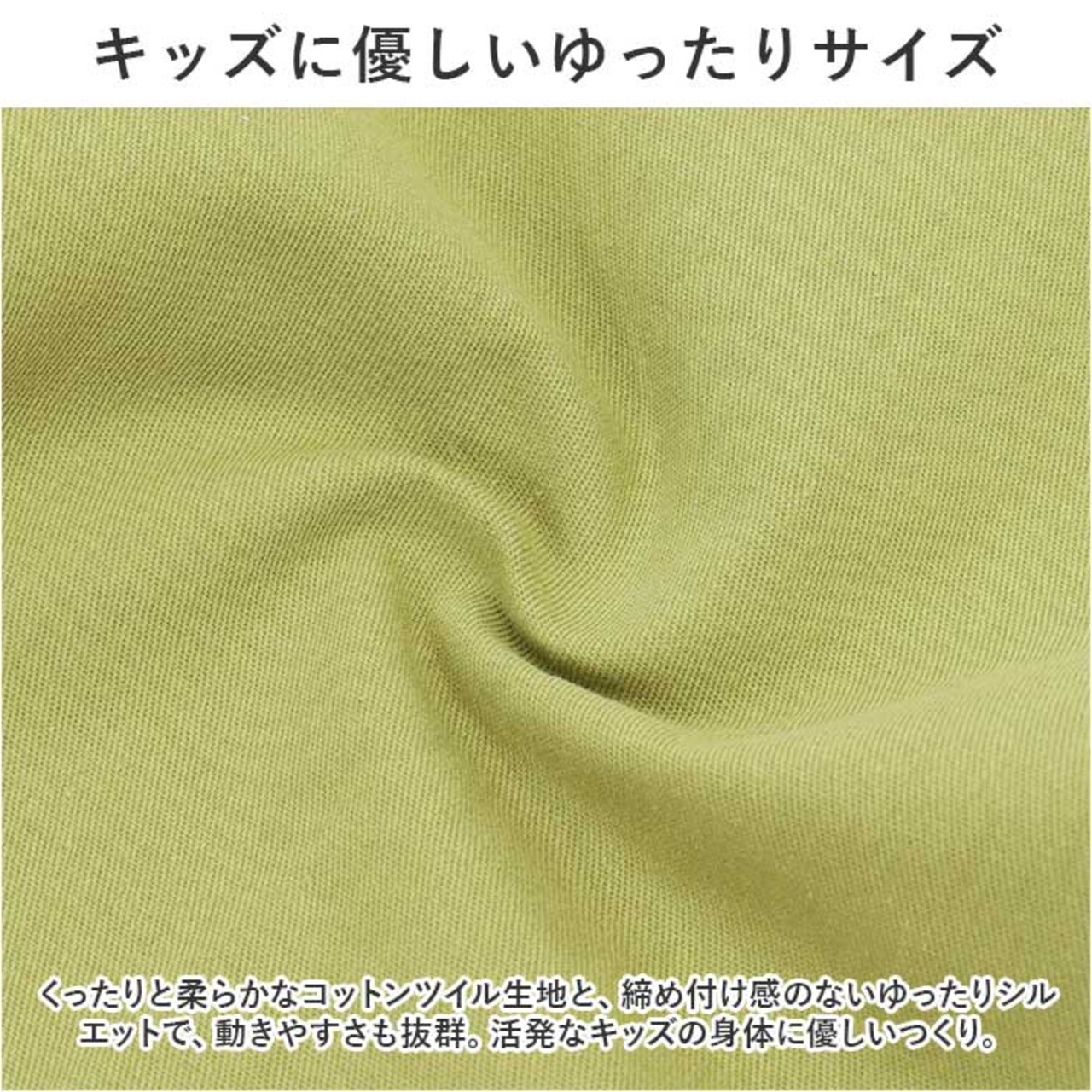 ・くったりと柔らかなコットンツイル生地と、締め付け感のないゆったりシルエットで、動きやすさも抜群。活発なキッズの身体に優しいつくり。