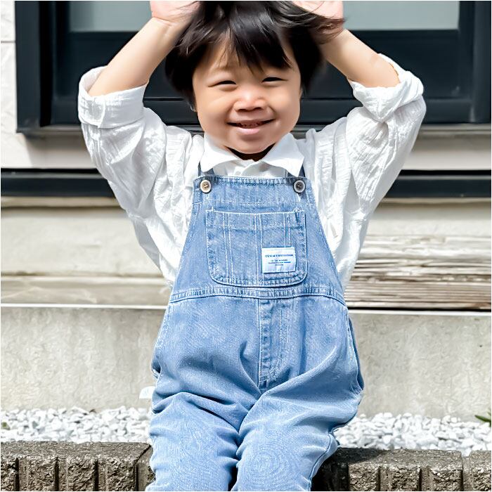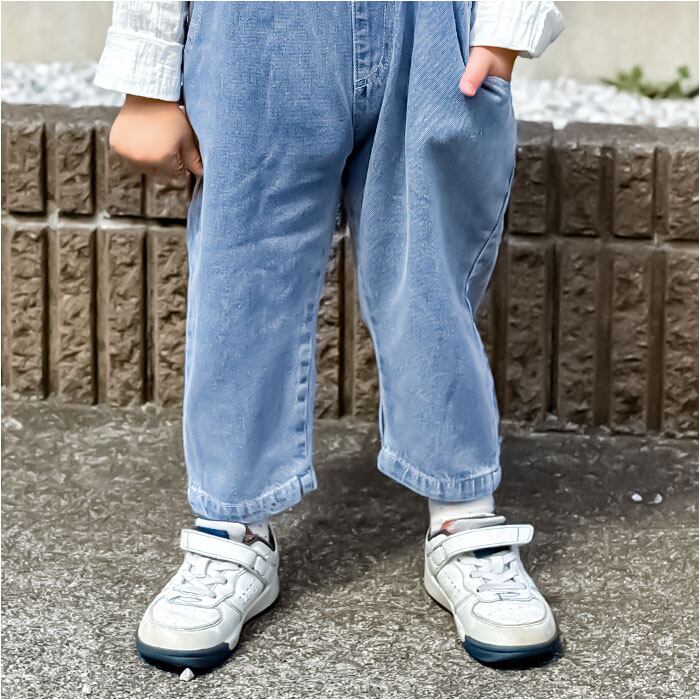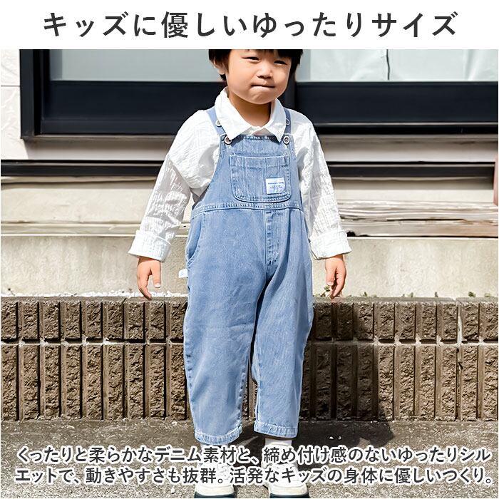 ・くったりと柔らかなデニム素材と、締め付け感のないゆったりシルエットで、動きやすさも抜群。活発なキッズの身体に優しいつくり。