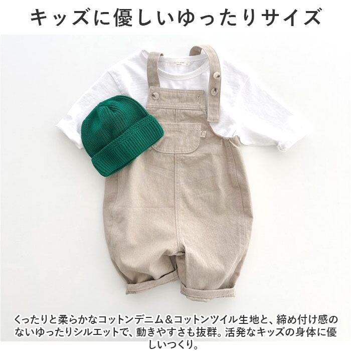 ・くったりと柔らかなコットンデニム&コットンツイル生地と、締め付け感のないゆったりシルエットで、動きやすさも抜群。活発なキッズの身体に優しいつくり。