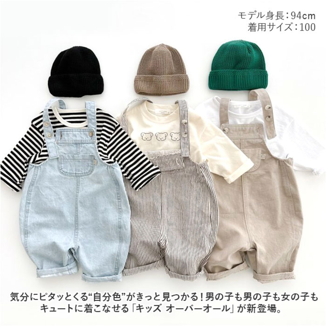・気分にピタッとくる“自分色”がきっと見つかる!男の子も男の子も女の子もキュートに着こなせる「キッズ オーバーオール」が新登場。