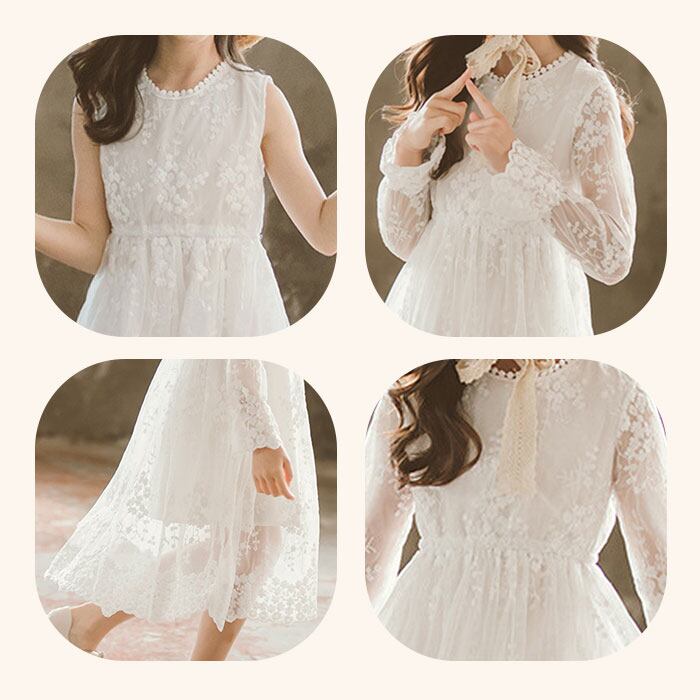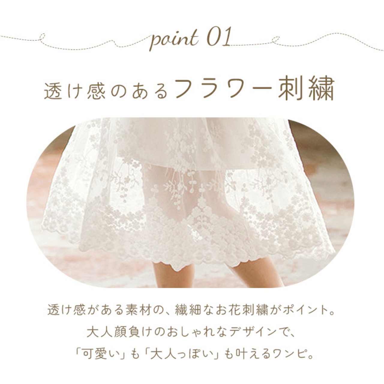 ・透け感のある素材全体に施された、繊細なお花モチーフの刺繍がポイント。大人顔負けのおしゃれなデザイン!