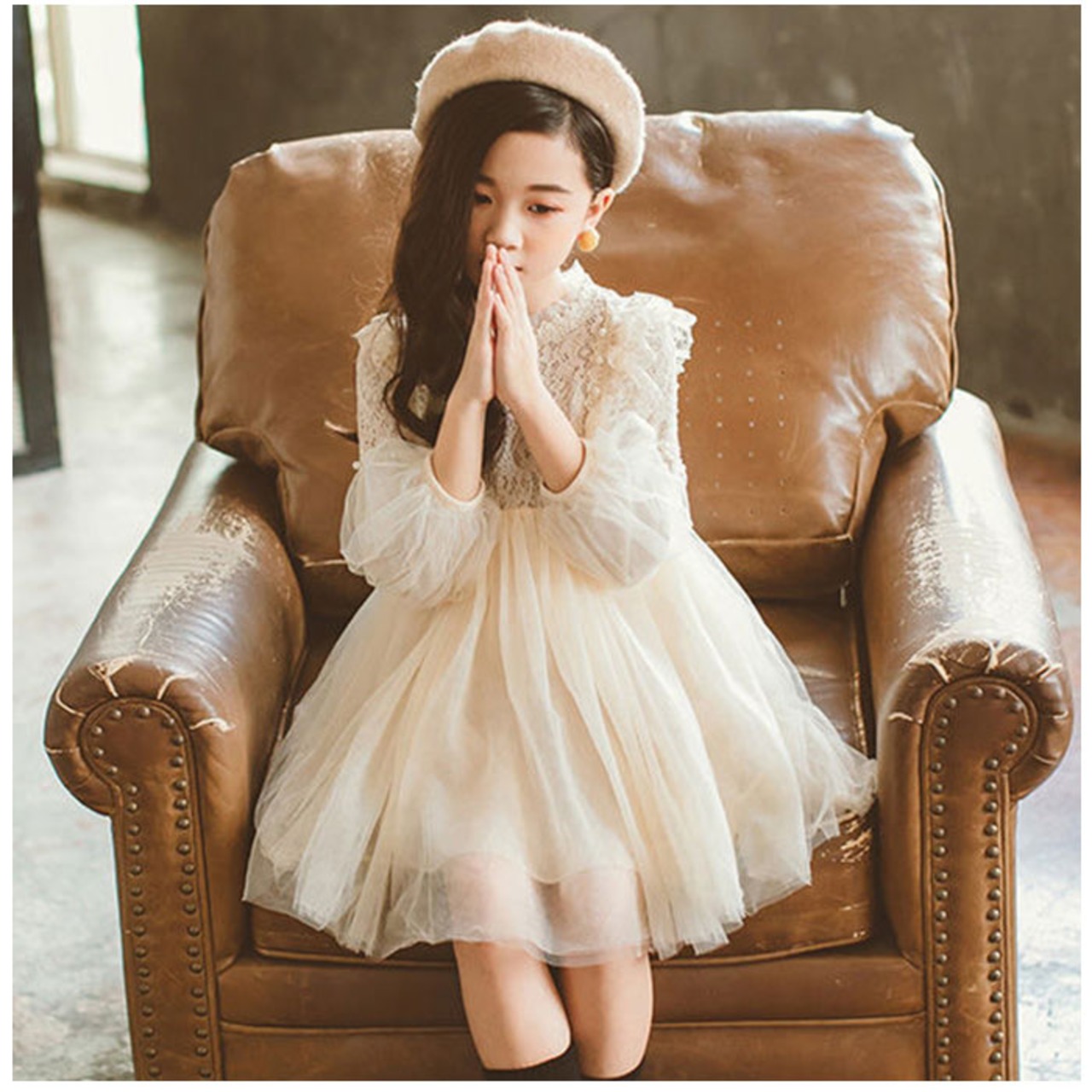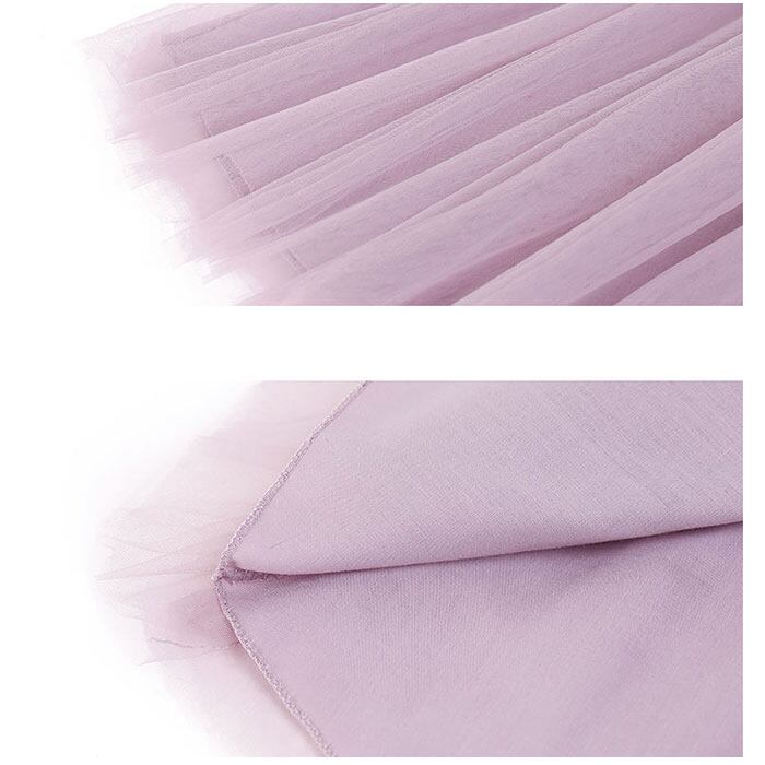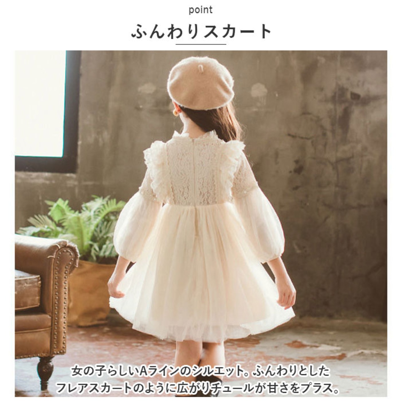 ・女の子らしいAラインのシルエット。ふんわりとしたフレアスカートのように広がりチュールが甘さをプラス。