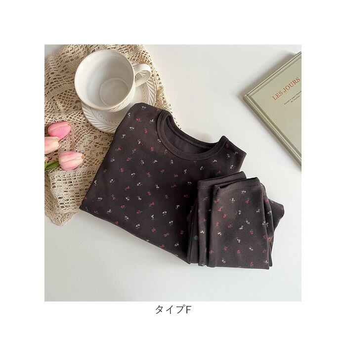 ・首元が詰まりすぎないクルーネックトップス&ウエストゴム仕様のパンツ。ストレッチ性もあり、パジャマやルームウェアとして大活躍!