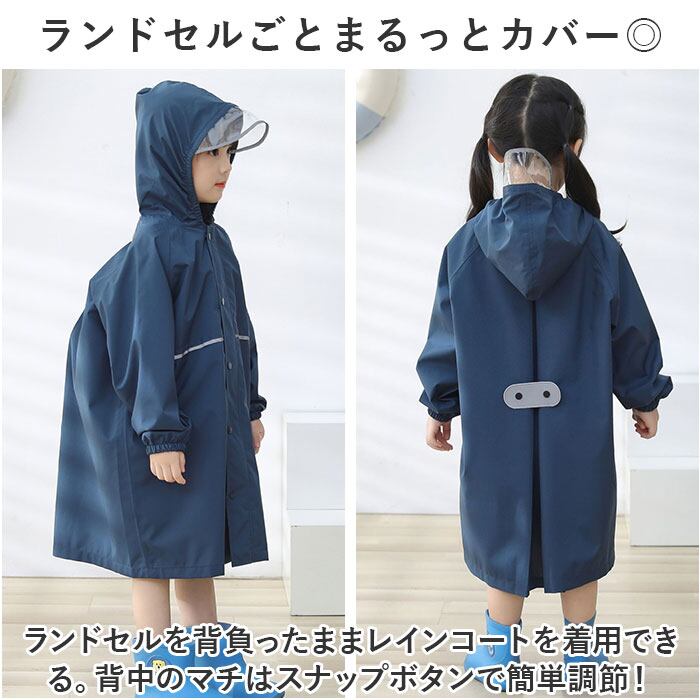 ・ランドセルを背負ったままレインコートを着用できる。背中のマチはスナップボタンで簡単調節!