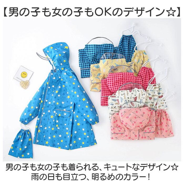 ・男の子も女の子も着られる、キュートなデザイン☆雨の日も目立つ、明るめのカラー!