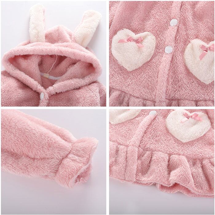 ・耳付きフードやハート型のポケット、リボンの飾りなど、女の子の”好き”がいっぱい詰まったワンピース風デザイン♪