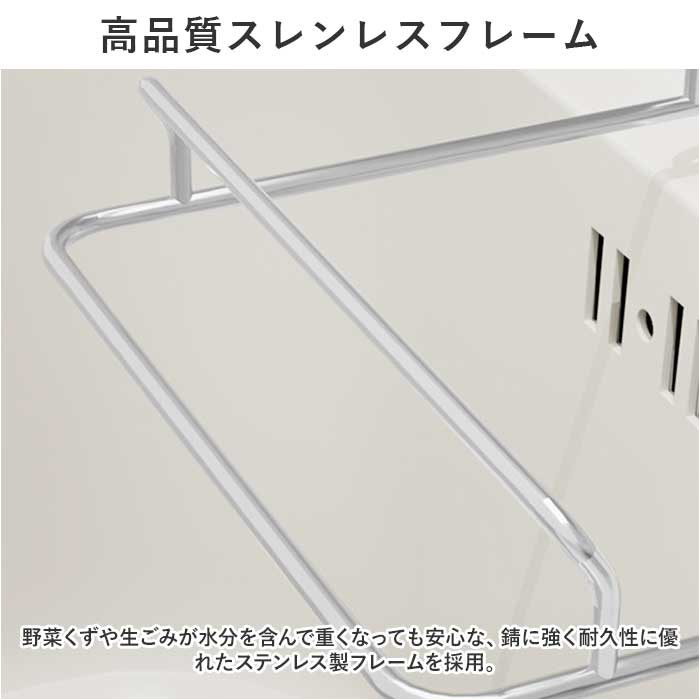 ・野菜くずや生ごみが水分を含んで重くなっても安心な、錆に強く耐久性に優れたステンレス製フレームを採用。