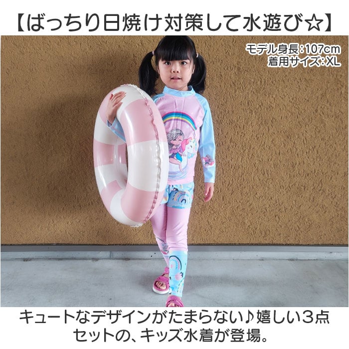 ・キュートなデザインがたまらない♪嬉しい3点セットの、キッズ水着が登場。