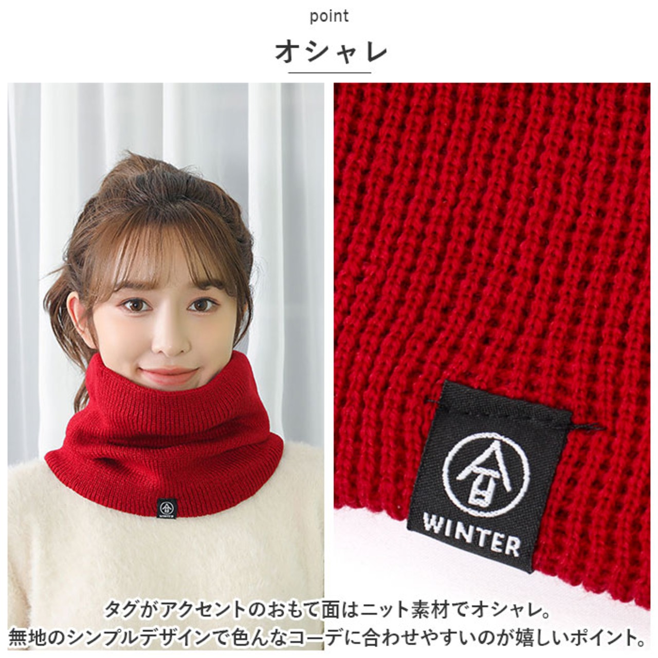 ・タグがアクセントのおもて面はニット素材でオシャレ。無地のシンプルデザインで色んなコーデに合わせやすいのが嬉しいポイント。