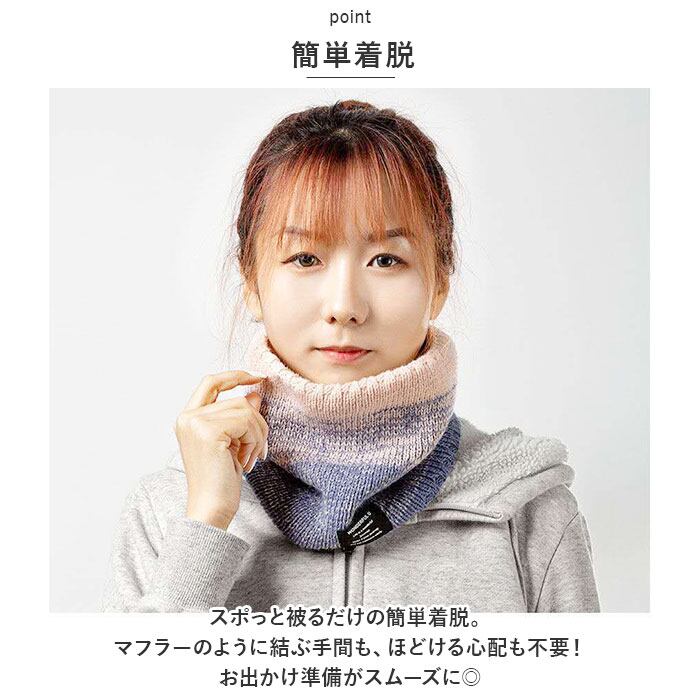 ・スポっと被るだけの簡単着脱。マフラーのように結ぶ手間も、ほどける心配も不要!お出かけ準備がスムーズに◎