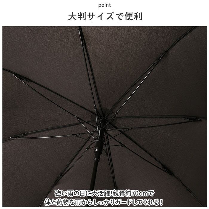 ・強い雨の日に大活躍!親骨約70cmで体と荷物を雨からしっかりガードしてくれる!