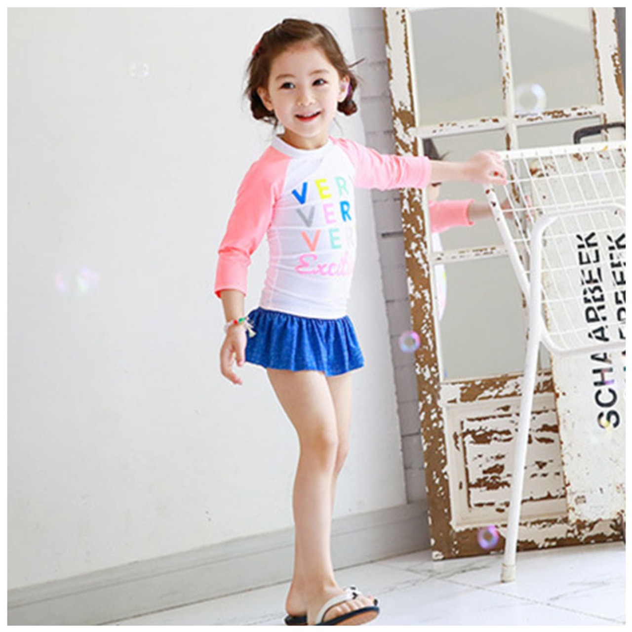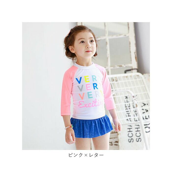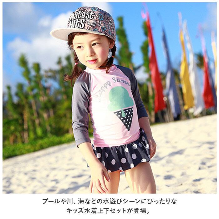 ・プールや川、海などの水遊びシーンにぴったりなキッズ水着上下セットが登場。