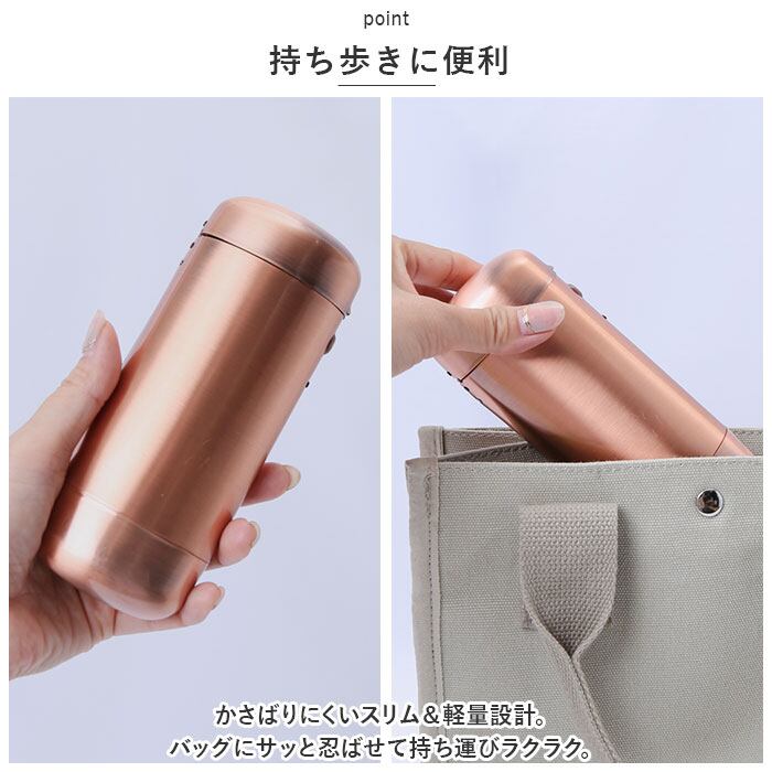 ・かさばりにくいスリム&軽量設計。バッグにサッと忍ばせて持ち運びラクラク。
