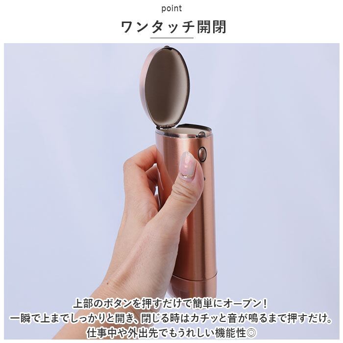 ・上部のボタンを押すだけで簡単にオープン!一瞬で上までしっかりと開き、閉じる時はカチッと音が鳴るまで押すだけ。仕事中や外出先でもうれしい機能性◎
