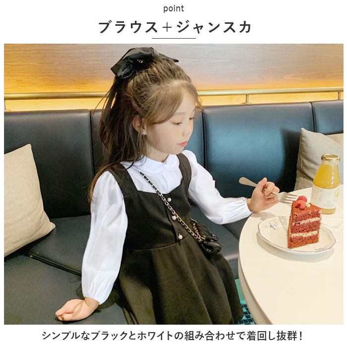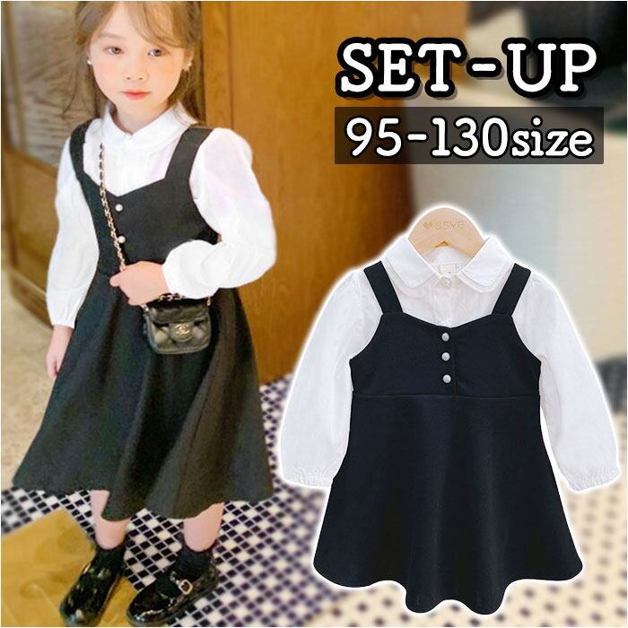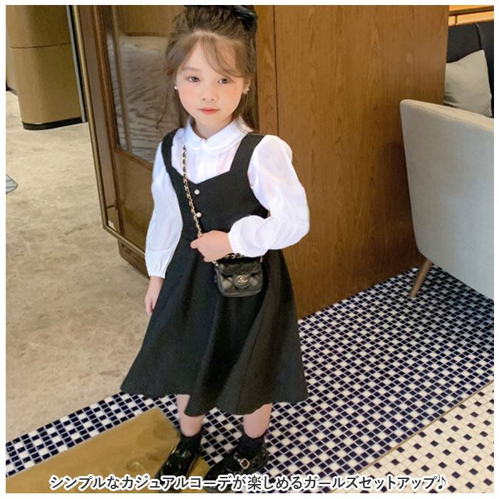 キッズ セットアップ 女の子 通販 ジャンパースカート サロペット スカート ブラウス 上下セット フォーマル ワンピース セレモニー シャツ 約 90 100 110 120 130 長袖 子供服 子ども 入園式 卒園式 おしゃれ トップス 可愛い かわいい
