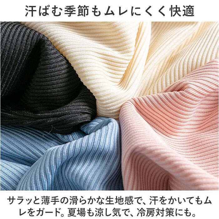 ・サラッと薄手の滑らかな生地感で、汗をかいてもムレをガード。夏場も涼し気で、冷房対策にも。