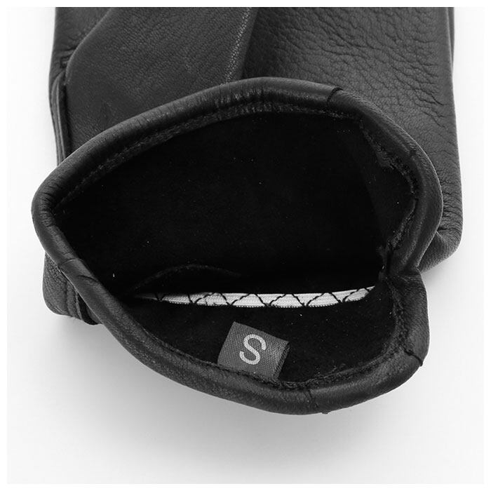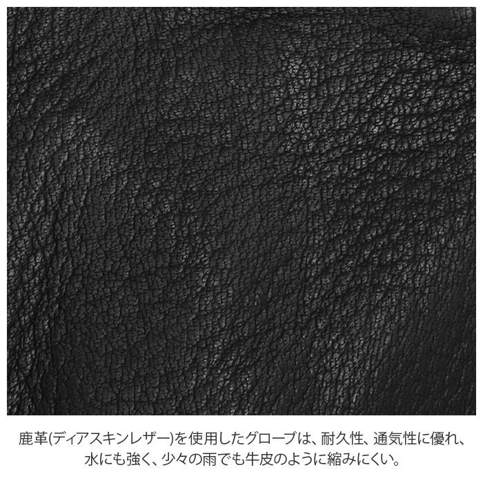 ・鹿革(ディアスキンレザー)を使用したグローブは、耐久性、通気性に優れた柔らかなシェル。水にも強く、少々の雨でも牛皮のように縮みにくい。
