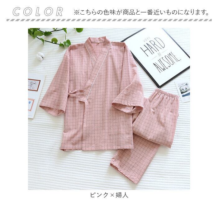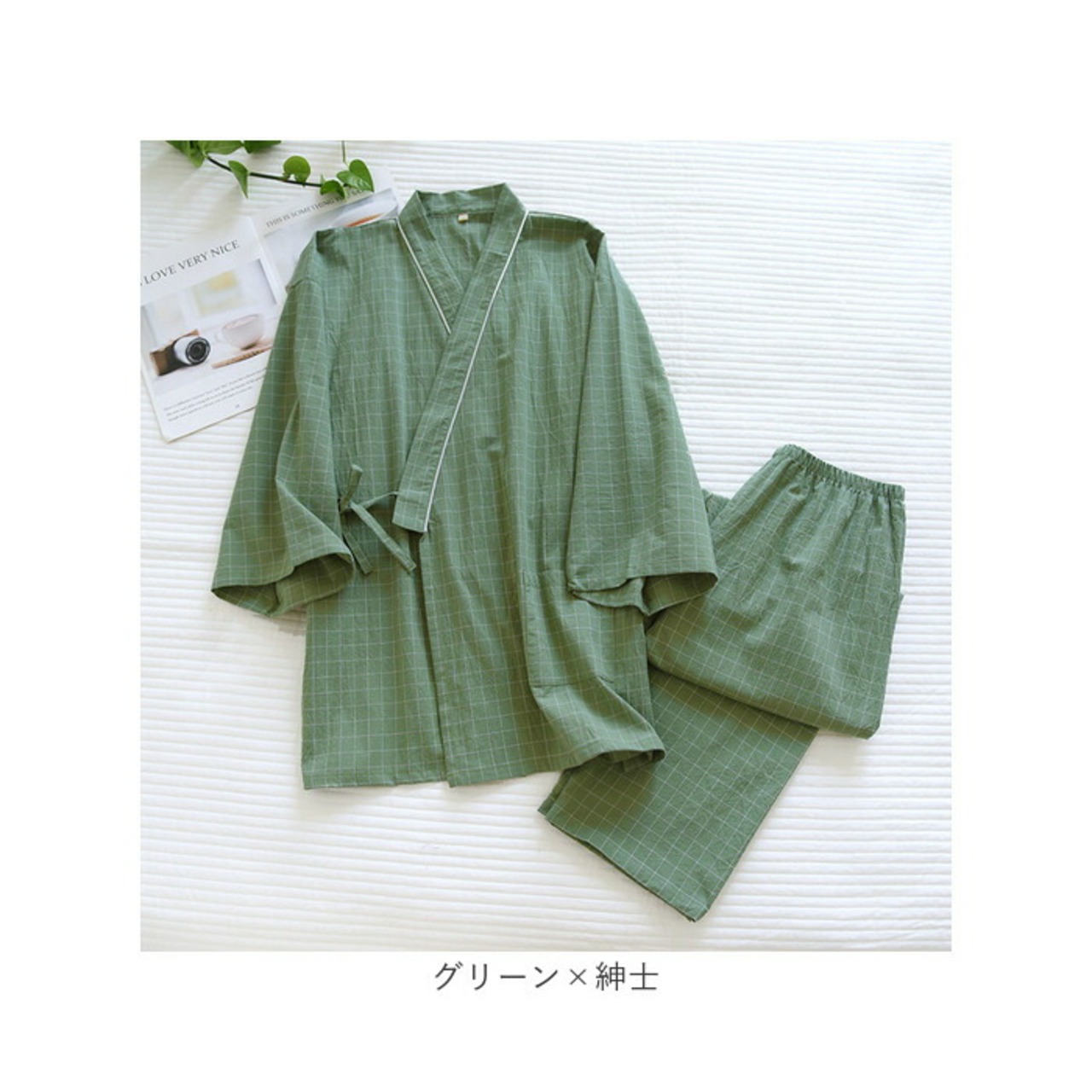 ・甚平風のトップスと、パンツのセット。冷房などによる、冷え対策にも最適な長袖タイプ。