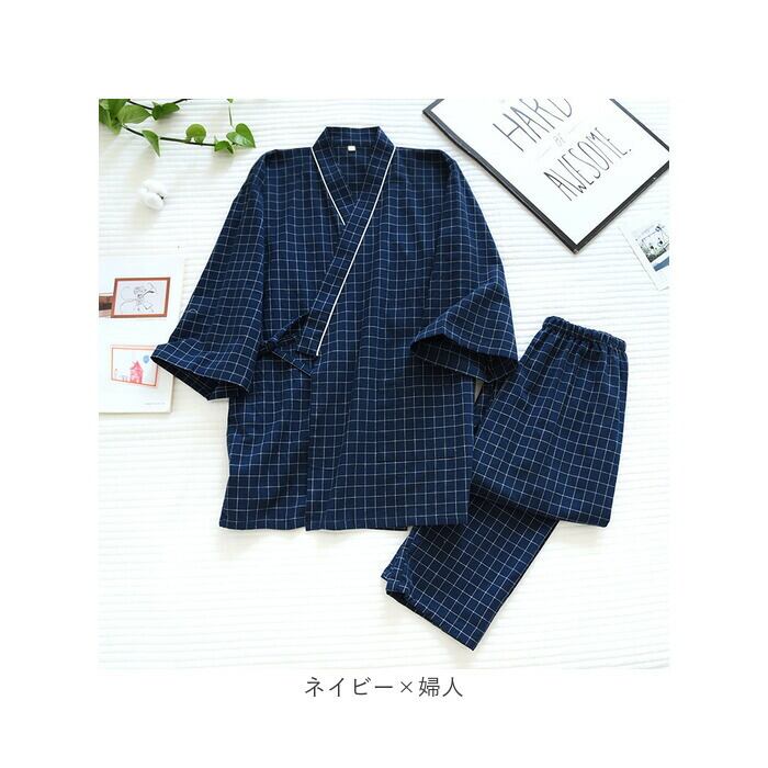 ・バタバタしがちなお風呂上がりにも、スムーズに着用できる和式の前開きタイプ!内紐&外紐付きで、はだけにくいのもポイント。