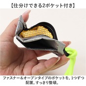 ・ファスナー&オープンタイプのポケットを、1つずつ配置。すっきり整頓。