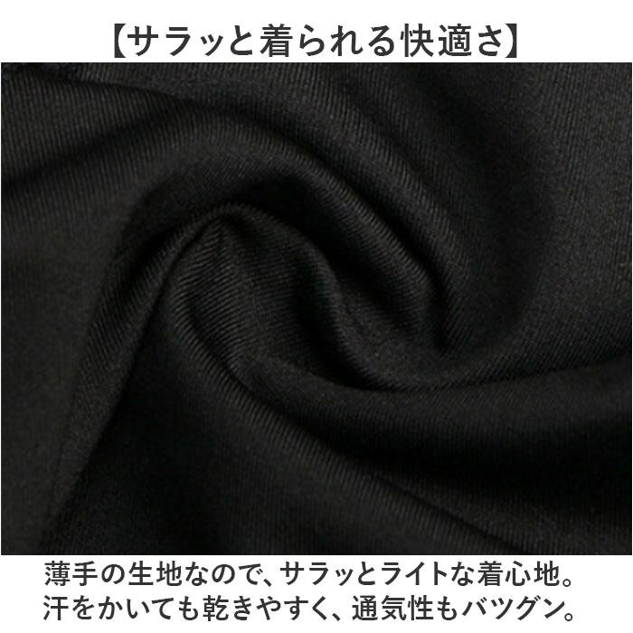 ・薄手の生地なので、サラッとライトな着心地。汗をかいても乾きやすく、通気性もバツグン。