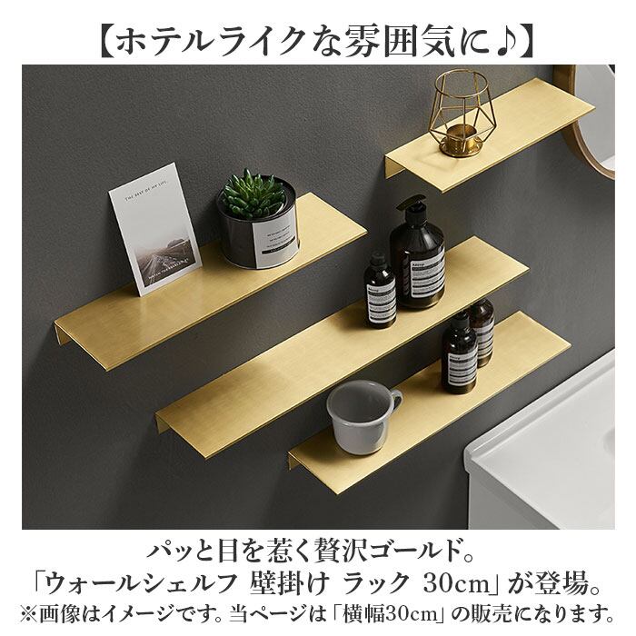 ・パッと目を惹く贅沢ゴールド。「ウォールシェルフ 壁掛け ラック 30cm」 が登場。