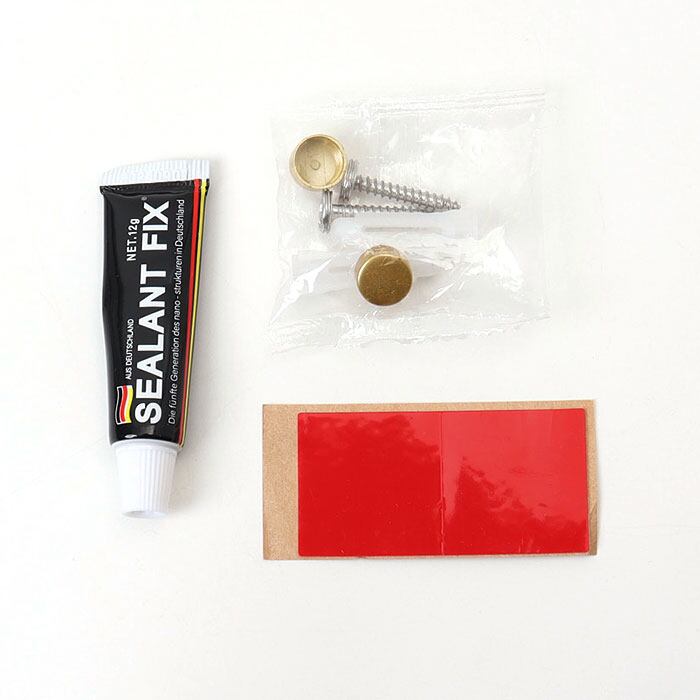 ・取り付けに必要なネジ、アンカー、ネジ隠し、両面テープ、接着剤がセット。