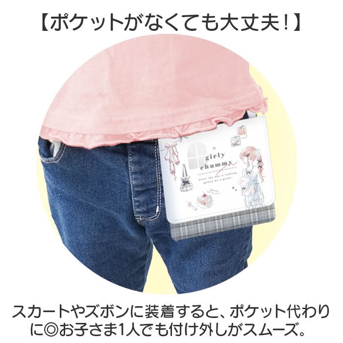 ・スカートやズボンに装着すると、ポケット代わりに◎お子さま1人でも付け外しがスムーズ。