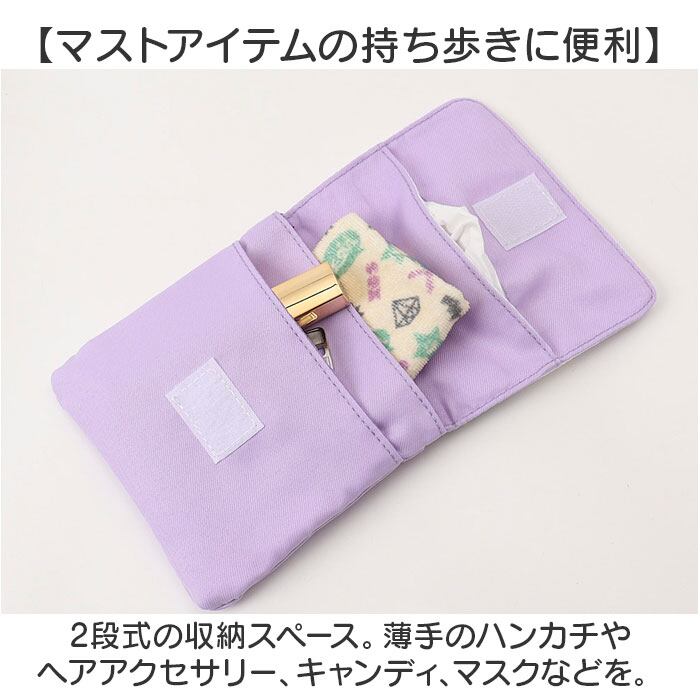 ・フラップ内側には、ポケットティッシュを。中央から取り出しやすいつくり。