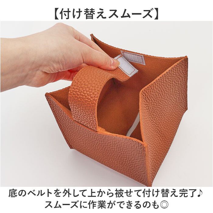 ・いつものティッシュがオシャレなアイテムに♪シボ感のある合皮素材を採用。
