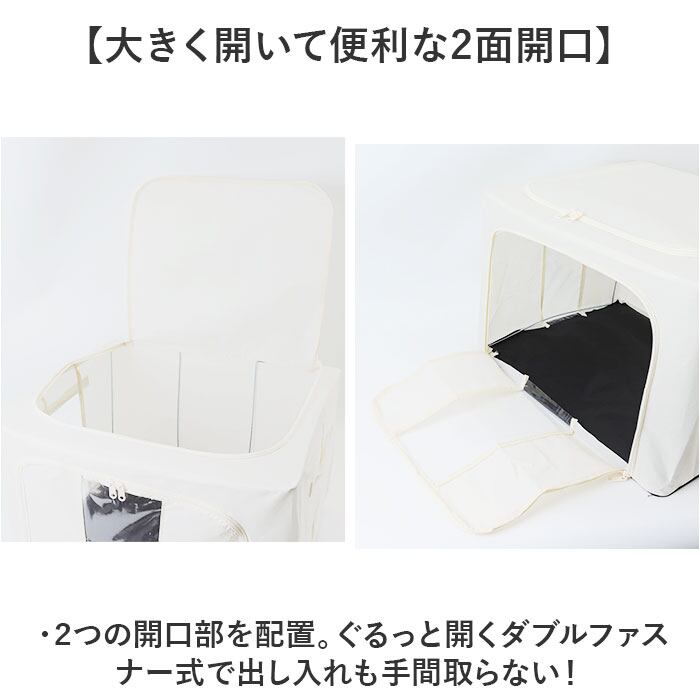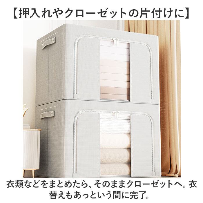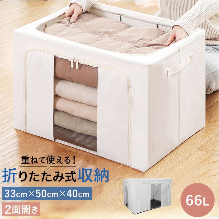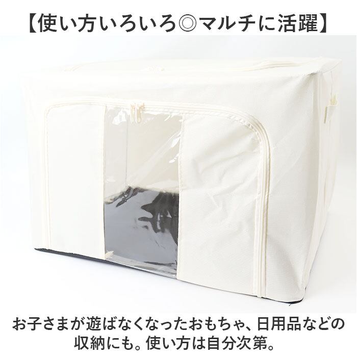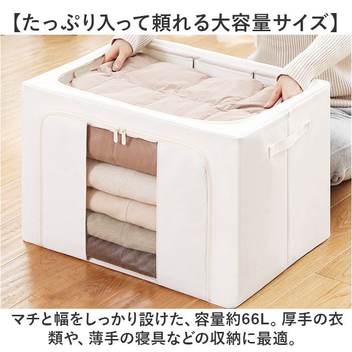 ・マチと幅をしっかり設けた、容量約66L。厚手の衣類や、薄手の寝具などの収納に最適。