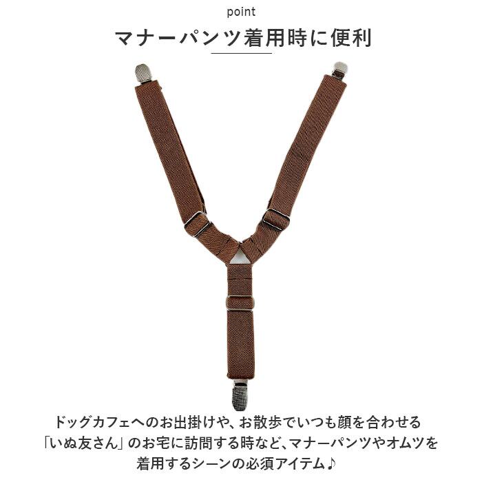 ・お出掛け中のオムツのズレ、もう気にならない!お洒落で実用的なペット用サスペンダー。