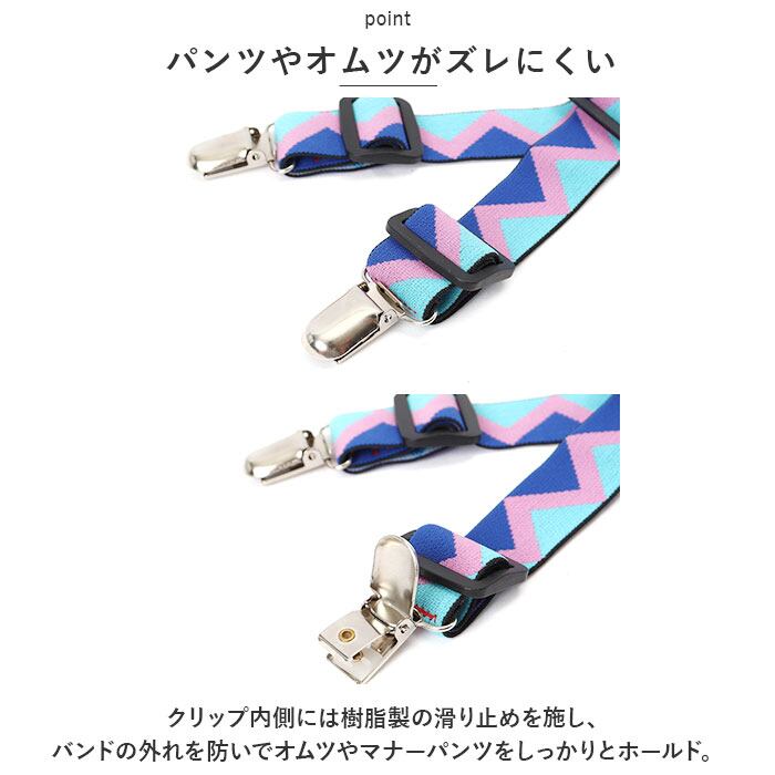 ・クリップ内側には樹脂製の滑り止めを施し、バンドの外れを防いでオムツやマナーパンツをしっかりとホールド。