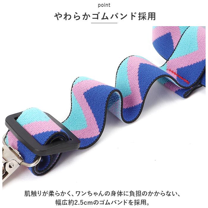 ・肌触りが柔らかく、ワンちゃんの身体に負担のかからない、幅広約2.5cmのゴムバンドを採用。