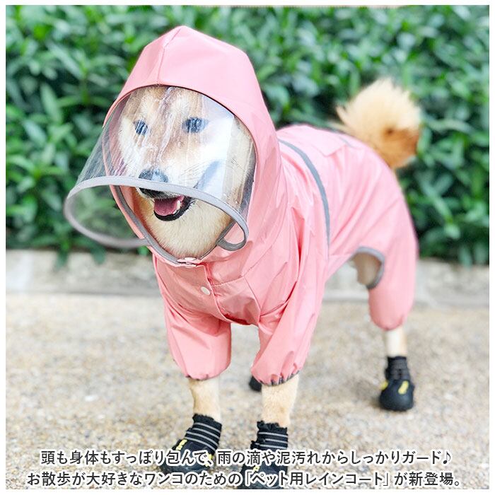 ・頭も身体もすっぽり包んで、雨の滴や泥汚れからしっかりガード♪お散歩が大好きなワンコのための「ペット用レインコート」が新登場。