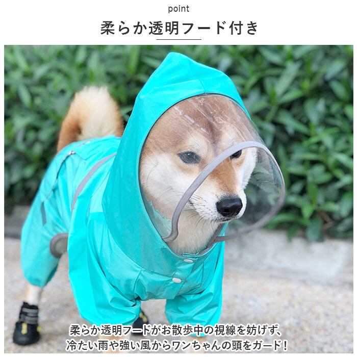・柔らか透明フードがお散歩中の視線を妨げず、冷たい雨や強い風からワンちゃんの頭をガード!