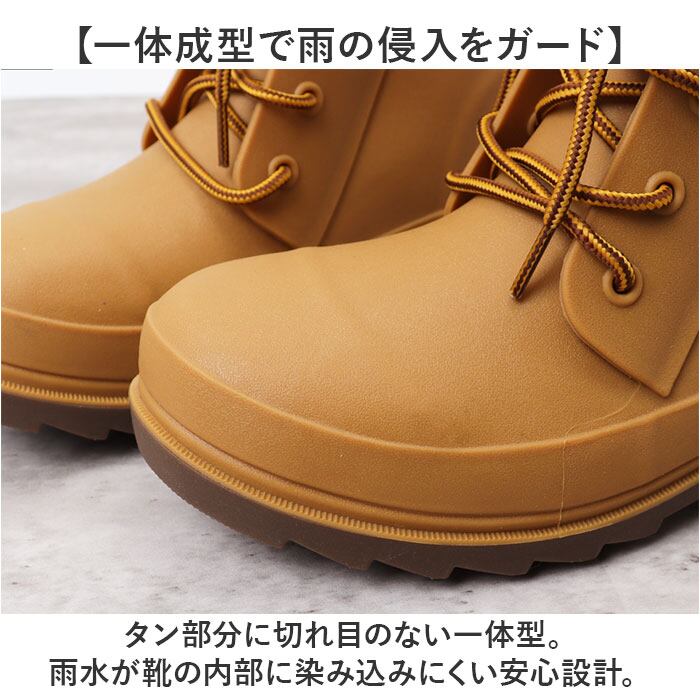 ・タン部分に切れ目のない一体型。雨水が靴の内部に染み込みにくい安心設計。