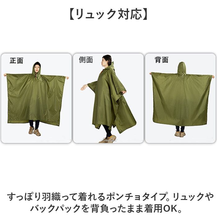 ・すっぽり羽織って着れるポンチョタイプ。リュックやバックパックを背負ったまま着用OK。